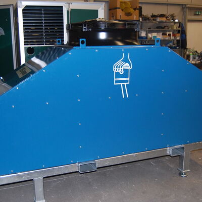 | Rahmen/ Gehäuse | Rahmen aus verzinktem Stahl, Wände aus Multiplex, Aluminium |