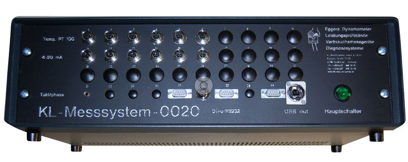 Mit dem Mess- und Diagnosesystem KL 0020 haben wir dieses Ziel erreicht. Entstanden ist eine Einheit, mit welcher sich alle relevanten Daten von Motor, Getriebe und Hydraulik erfassen lassen. Neben dem Anschluss von EGGERS-Dynamometer und Verbrauchsmessgerät, bietet dieses System zahlreiche Schnittstellen für z.B. Drehzahl-, Druck-, Durchfluss- und Temperatursensoren, CAN-Module, Wettermodule und Abgasmessgeräte. Auch die Erfassung von GPS-Daten im mobilen Betrieb ist möglich und kann aufschlussreiche Ergebnisse liefern.