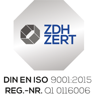 ZDH-ZERT GmbH bescheinigt, dass die Organisation KL Maschinenbau GmbH in den Tätigkeitsbereichen Entwicklung, Konstruktion, Herstellung und Vertrieb von Messgeräten und Diagnosesystemen ein Qualitätsmanagement entsprechend der folgenden Norm eingeführt hat und anwendet: DIN EN ISO 9001:2015